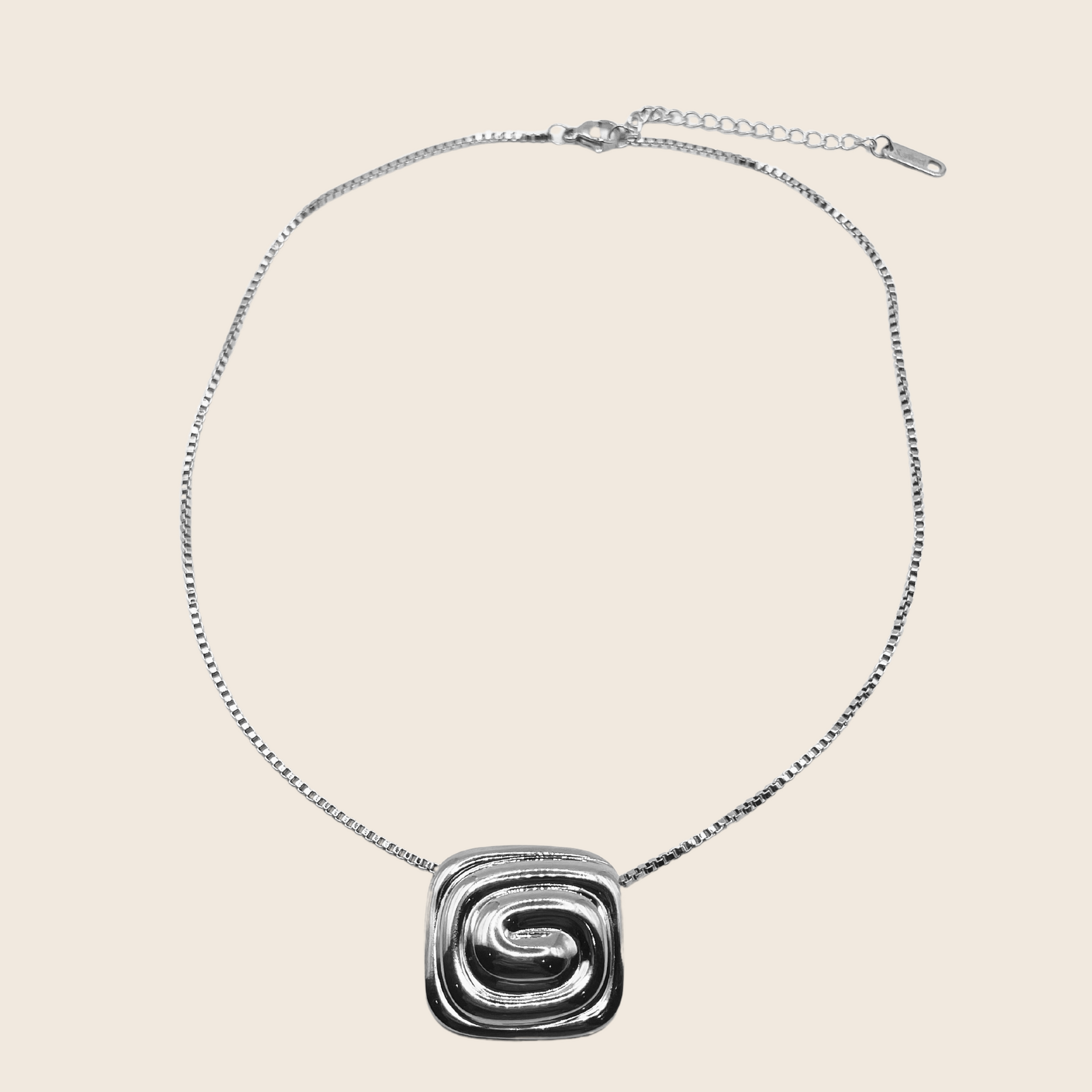 The cool details: • Premium stainless steel construction • Tarnish-proof finish that keeps its shine • Adjustable length: 38cm + 5cm extension chain • Soft square pendant with unique swirl design • Made for everyday wear and special moments