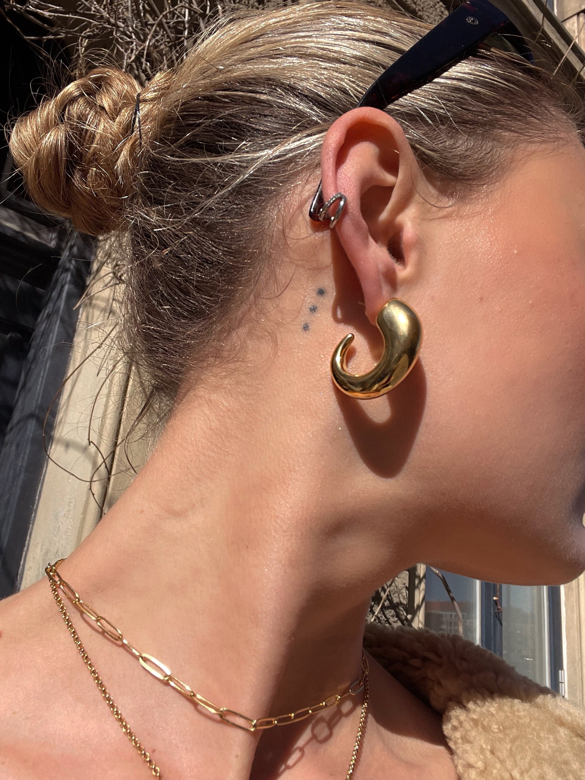 These aren't your average hoops. Meet Una - the chunky statement earrings that do the talking for you. Crafted in a bold horn shape with a clever hollow design, they're light enough for all-day wear but heavy on style impact.