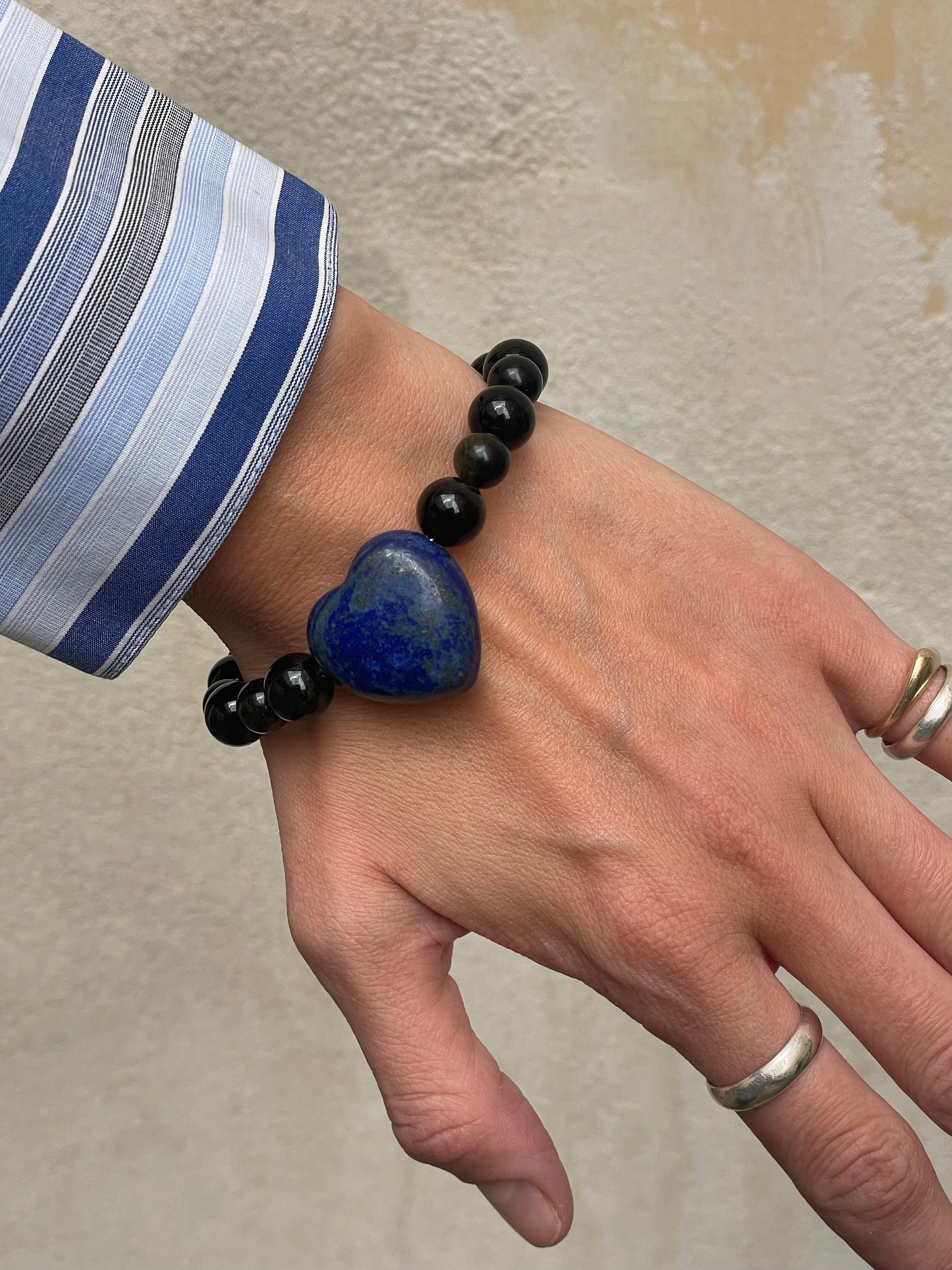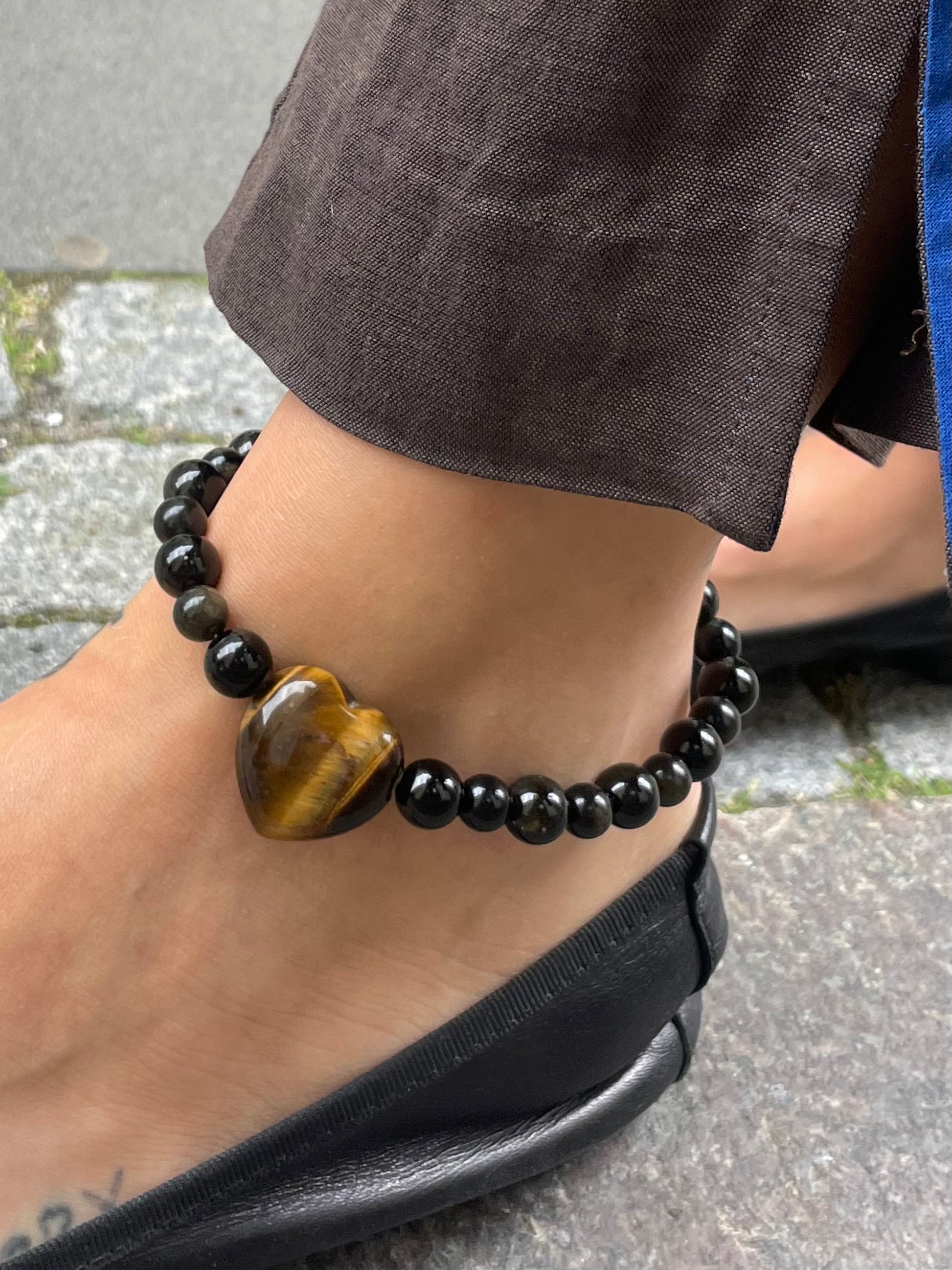 Handmade in our Copenhagen studio, the Obsidian Heart design comes in both a bracelet and an anklet. Each piece is made with polished black obsidian beads and finished with a gemstone heart at the center.
