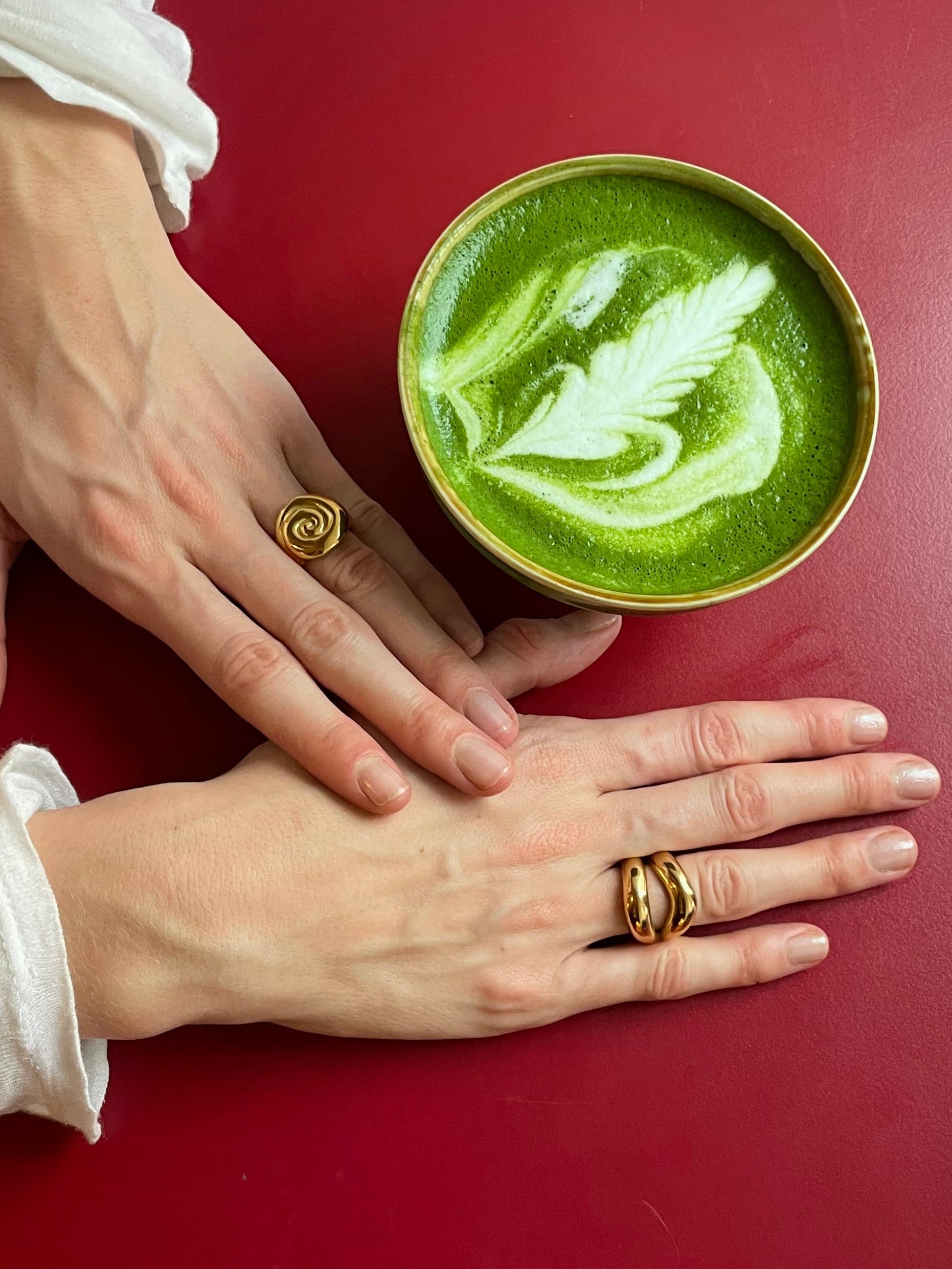 The Twin Ring is a chunky double band that wraps around your finger in one smooth, sculpted shape. It looks like two rings stacked, but with a softer, more fluid curve that makes it feel modern and bold at the same time.